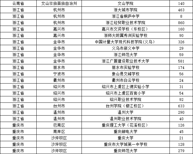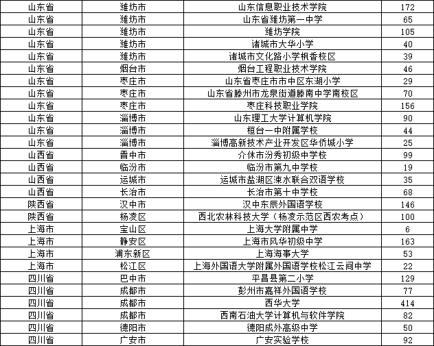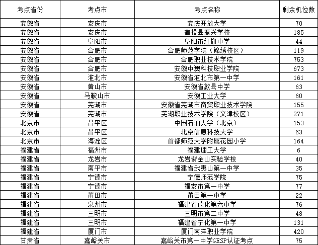 【考点剩余机位数参考列表】( 系统余位实时更新)