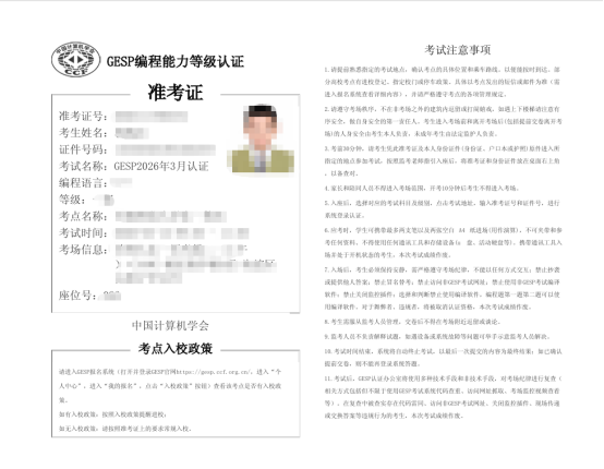 2. 考试结束后5个工作日,CCF GESP网站会公布考试成绩,请各位考生及时关注官方网站或官方公众号。最后,再次预祝各位考生考试顺利,取得好成绩。